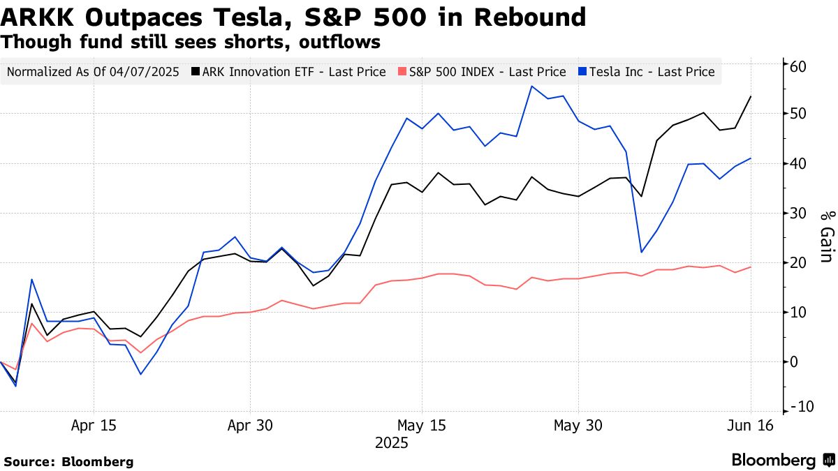 ARKK’s speculative tech holdings like Tesla Inc., Roblox Corp., and Coinbase Global Inc. have rebounded from tariff-volatility induced lows alongside the broader stock market as President Donald Trump has walked back some of his most extreme trade proposals and corporate earnings have been resilient.