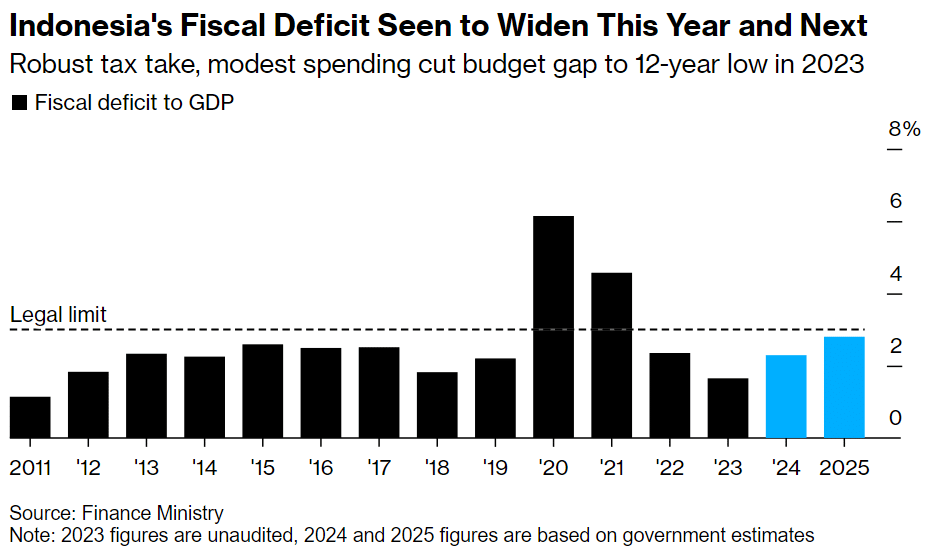 Indonesia plans to propose a wider budget deficit for next year to fund new policies by the incoming president, which may include Prabowo Subianto’s free lunch program. The program has raised concerns over Indonesia’s fiscal health.