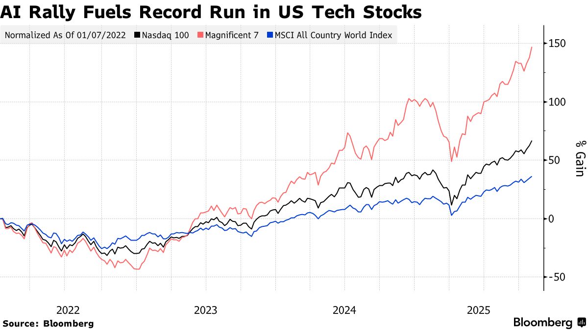 His concern comes as US tech stocks posted fresh all-time highs, with Microsoft Corp., Nvidia Corp. and Apple Inc. now all topping $4 trillion in market value.