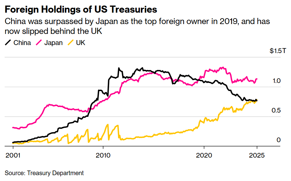 The post “ China Drops to No. 3 Holder of Treasuries, Falling Behind UK” first appeared on Bloomberg