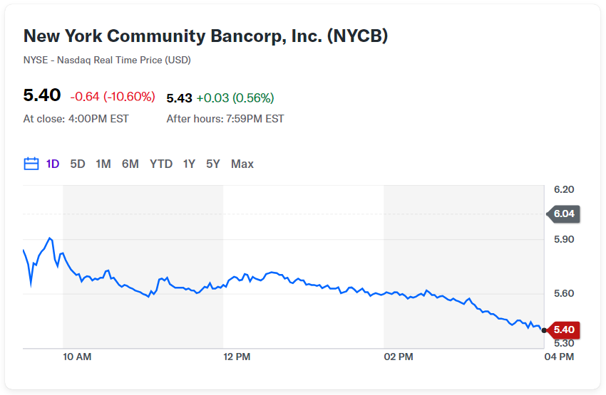 The new concerns about regional banks were triggered by $116 billion commercial real estate lender New York Community Bancorp (NYCB), which shocked Wall Street last Wednesday when it slashed its dividend, reported a surprise quarterly loss, and stockpiled millions for future loan losses related to commercial real estate holdings.