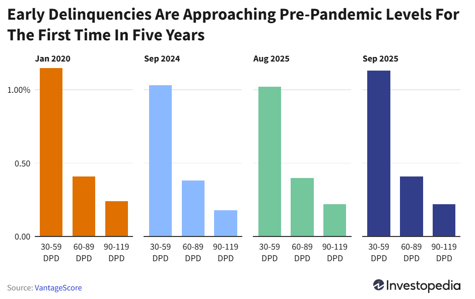 A recent report from credit scoring company VantageScore showed that delinquency rates for consumer loans grew in September. Specifically, early-stage delinquencies are approaching rates not seen in five years.1