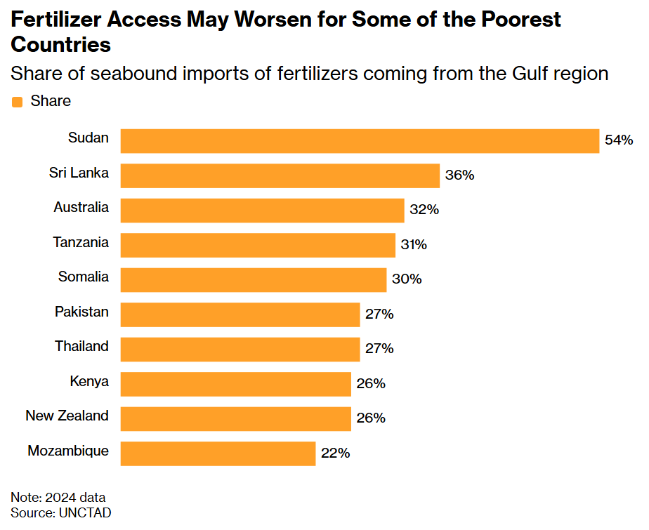 Nitrogen fertilizers underpin roughly half of global food production by supplying plants with nutrients that support their growth. If the disruption persists, farmers are likely to cut back their fertilizer use, leading to lower crop yields. “This is not only a price shock. It could also become a production shock with a lag built in,” said Wesley Davis, an economist at Meridian Agribusiness Advisors.