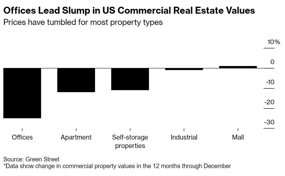 The concern reflects the ongoing slide in commercial property values coupled with the difficulty predicting which specific loans might unravel. Setting that stage is a pandemic-induced shift to remote work and a rapid runup in interest rates, which have made it more expensive for strained borrowers to refinance. Billionaire investor Barry Sternlicht warned this week that the office market is headed for more than $1 trillion in losses.