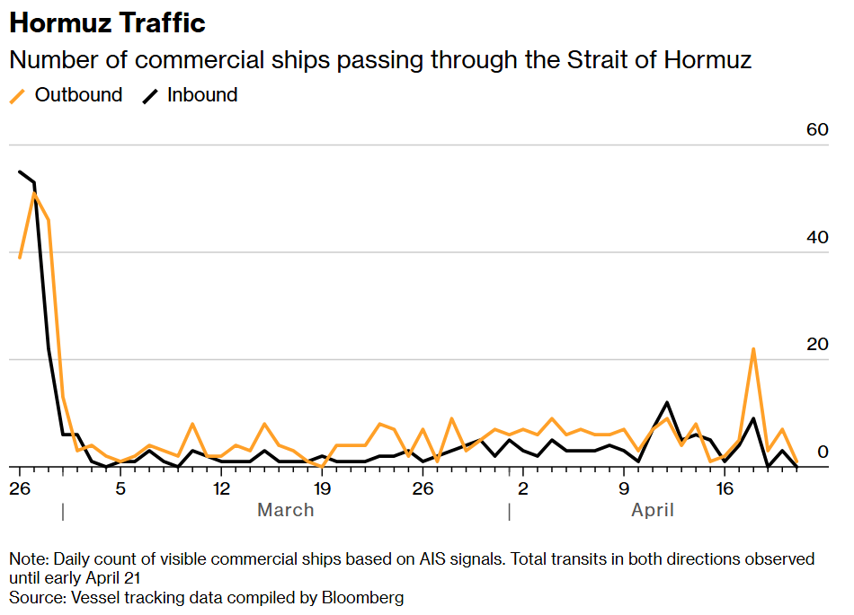 Tracking the electronic signals of tankers suggest that only a few are passing through Hormuz, including some that are linked to Iran but aren’t leaving the region. Some carriers are sneaking through with their transponders off.