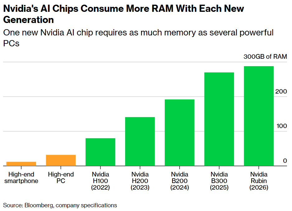 The fundamental reason for the squeeze is the buildout of AI data centers. Companies like Alphabet Inc. and OpenAI are gobbling up an increasing share of memory chip production — by buying millions of Nvidia Corp. AI accelerators that come with huge allotments of memory — to run their chatbots and other applications. That’s left consumer electronics producers fighting over a dwindling supply of chips from the likes of Samsung Electronics Co. and Micron.