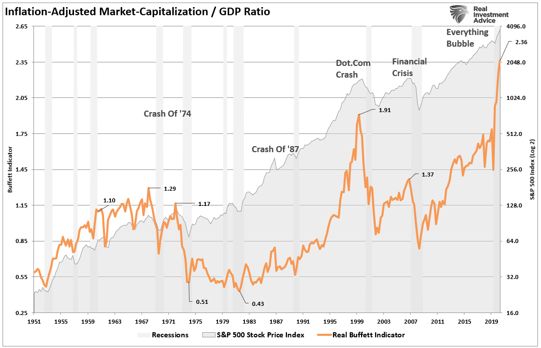 However, the important lesson is that bubbles are entirely a function of “psychology.” The manifestation of that “bubble psychology” manifests itself in asset prices and valuations.