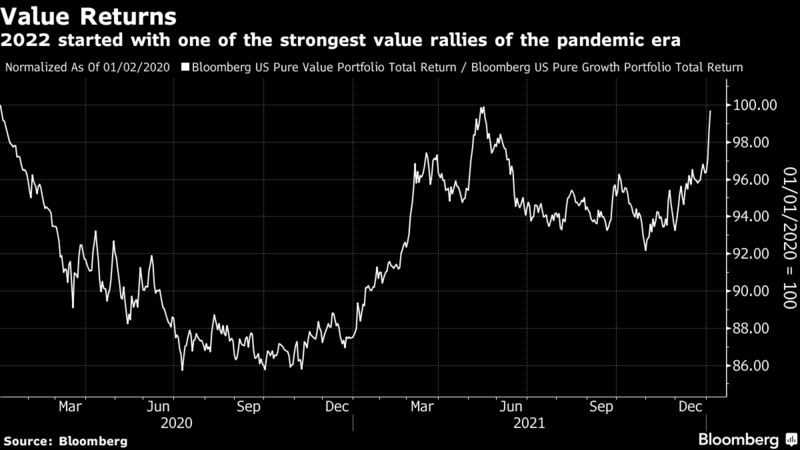 That signaling isn’t all bad news for markets, as it implies that the Fed sees strength in the economy. If growth is plentiful, there is less need to pay up for the few companies with reliable strong growth, and more reason to stack up on those that look cheap and have value that can be realized in good times. So the stock market saw a sharp switch away from the growth style and toward value stocks. According to Bloomberg’s FTW (Factors To Watch) service, value has now made up almost all of its losses to growth since the beginning of 2020:
