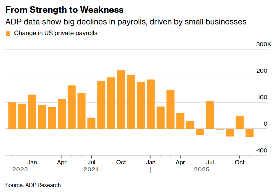 For companies, it’s almost impossible to plan when policy is so unpredictable. The latest survey of the nation’s chief financial officers by Duke University and the Federal Reserve Bank of Richmond shows optimism about the economy is no different than in early 2020, when the global pandemic was raging and everyone was worried about a depression. Small businesses drive job growth. The problem is that private employers in both goods- and services-producing industries are slashing workers, according to the November ADP National Employment Report. Businesses with fewer than 50 employees cut 120,000 jobs, the largest one-month decline since May 2020.