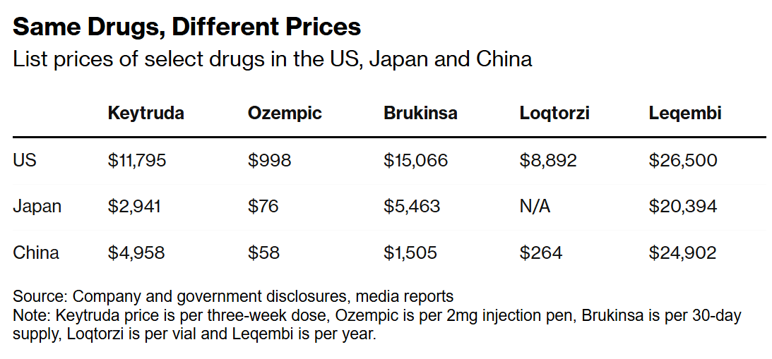 Over the weekend, Trump vowed to sign an executive order in Washington to institute what he called a most-favored nation policy, mandating that Americans pay no more than people in countries that have the lowest price and promising a 30% to 80% cut in drug prices.