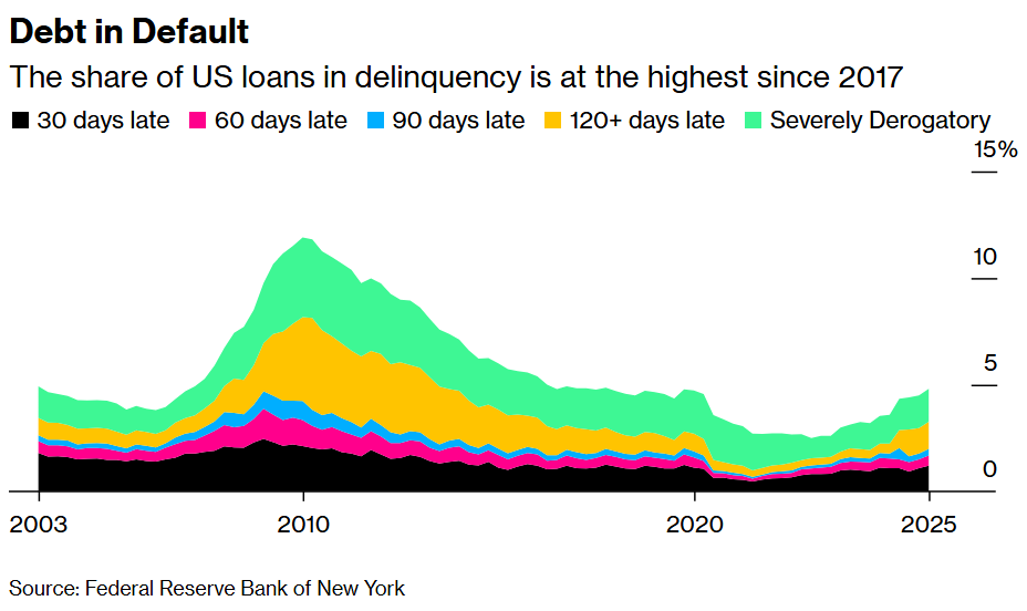 The post “US Consumer Delinquencies at the Highest Since 2017” first appeared on Bloomberg