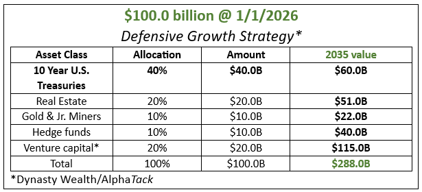 My recommendation is for all investors to liquidate their publicly traded holdings including mutual funds. The proceeds can be utilized to deploy my defensive growth strategy (DGS). The table below contains the allocations for the strategy.