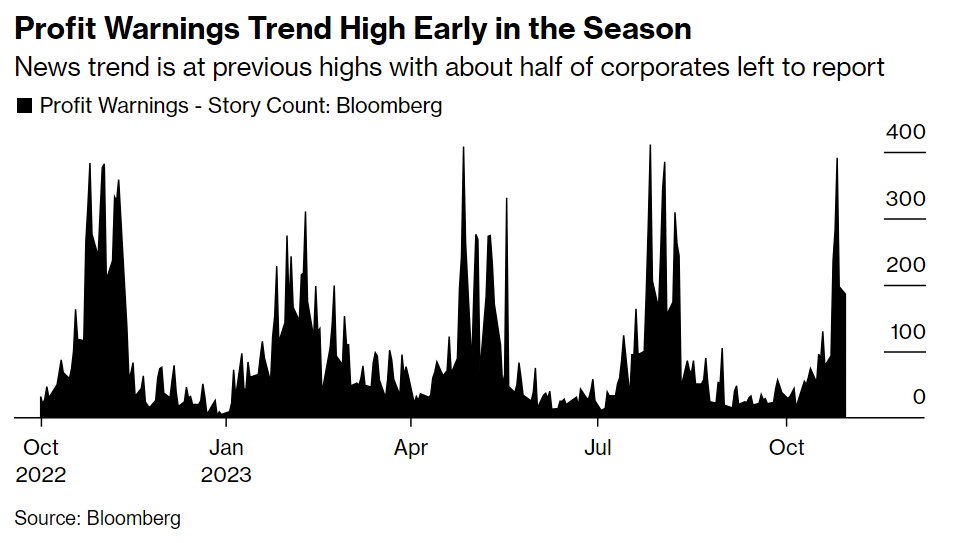 • Profit warning news trend is at high only halfway into season