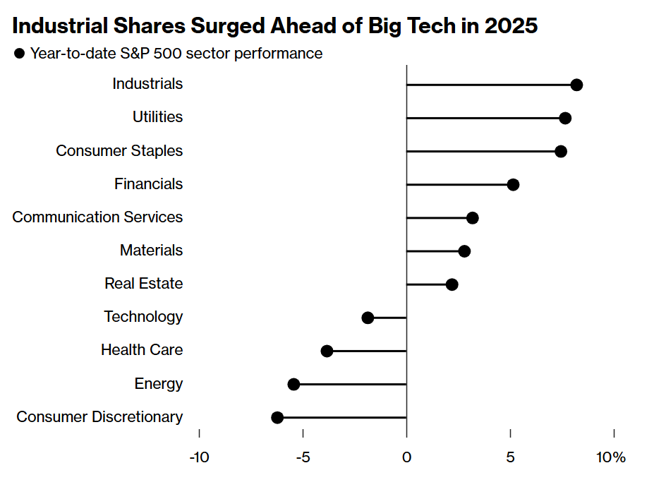 Improved breadth – meaning broader participation in the rally that has been primarily focused on the biggest technology stocks — could provide some juice for the next leg higher in share prices. The market’s best performing sector this year is industrials, an optimistic sign for shares and growth since those companies are closely tied to the economy and manufacture goods and transport them. The group has climbed 8.2% in 2025.